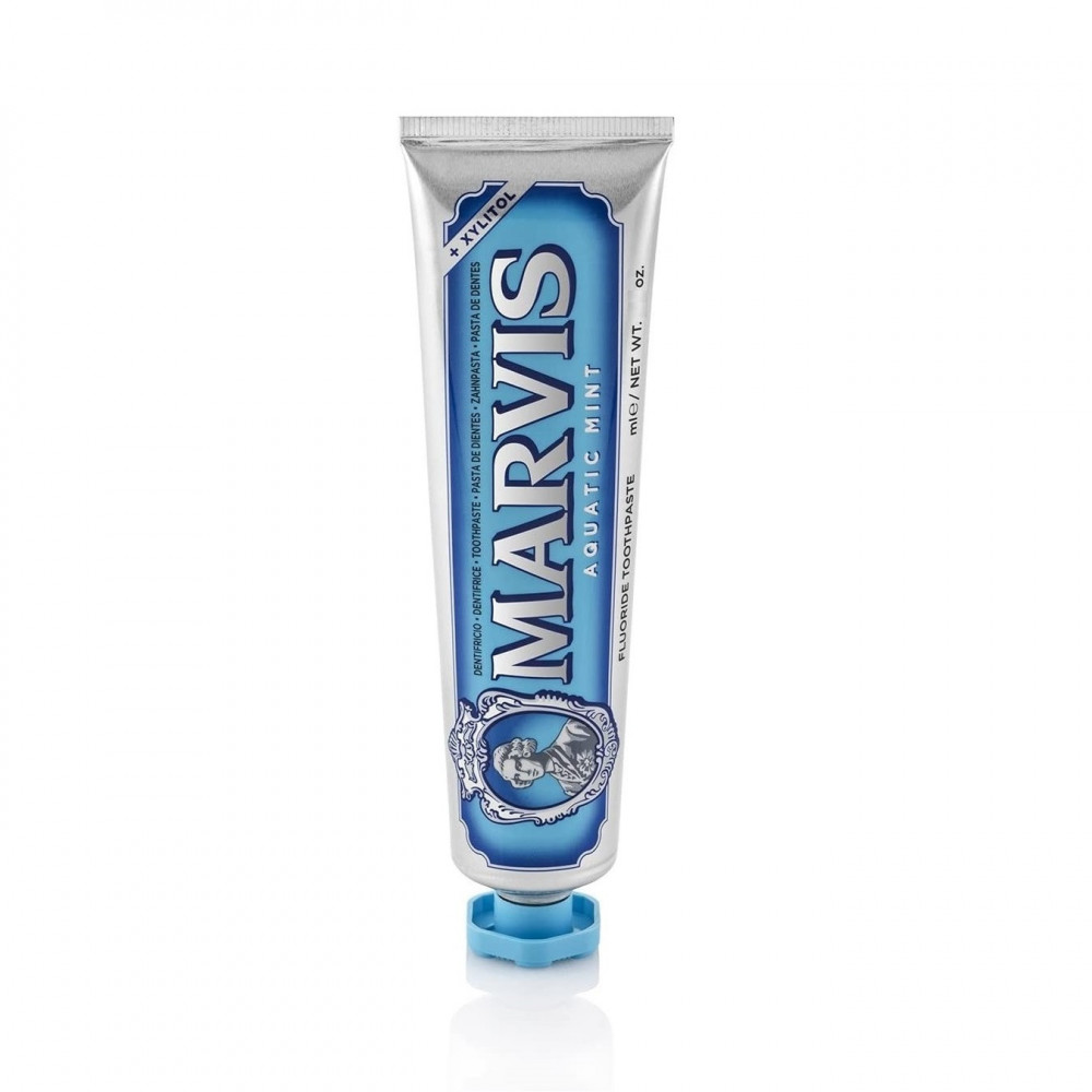 مارفس هي علامة تجارية فاخرة لطب الأسنان محبوبة في إيطاليا لأجيال مارفس خط فاخر من منتجات العناية بالفم التي تحول طقوس تنظيف الأسنان اليومية إلى تجربة حسية رائعة يقدم Marvis Aquatic Mint لمسة حلوة وباردة من النعناع مع نضارة البحر المنعشة يتم إنشاء نكهات مارفيس من خلال موازنة رائحة النعناع ، لتوفير النضارة التي تحتاجها مع ملاحظات مبتكرة تمنحك إحساسًا ممتعًا يدوم طويلاً يمكن أن يكون مختلفًا كل يوم تركيبة مارفيس: أسنان بيضاء ومحمية ونفس منعش طوال اليوم وتساعد في منع تسوس الأسنان والجير والبلاك نكهة النعناع المائي، يمنح إحساسًا بالانتعاش الخفيف والمريح، ويقاوم تراكم البلاك (الجير) للحفاظ على صحة الأسنان.