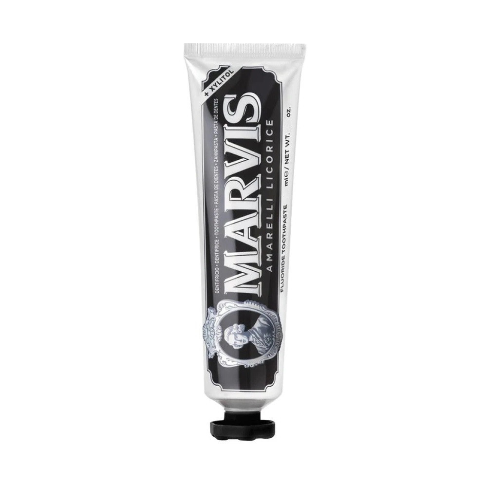 مارفس هي علامة تجارية فاخرة لطب الأسنان محبوبة في إيطاليا لأجيال مارفس خط فاخر من منتجات العناية بالفم التي تحول طقوس تنظيف الأسنان اليومية إلى تجربة حسية رائعة هو معجون أسنان كريمي غني يوفر إحساسًا منعشا و يزيل البلاك والجير للحصول على ابتسامة بيضاء متلألئة أدى هذا التعاون مع شركة Amarelli الإيطالية ، المشهورة لإنتاج Marvis Amarelli إلى ظهور رائحة أنيقة نظيفة و مغرية بنضارة النعناع لتوفير النضارة التي تحتاجها مع ملاحظات مبتكرة تمنحك إحساسًا ممتعًا يدوم طويلاً يمكن أن يكون مختلفًا كل يوم تركيبة مارفيس: أسنان بيضاء ومحمية ونفس منعش طوال اليوم وتساعد في منع تسوس الأسنان والجير والبلاك مزيج من عرق السوس والنعناع، يتميز بخصائص مضادة للبكتيريا ويساعد على تعزيز صحة اللثة مع توفير نكهة فريدة.